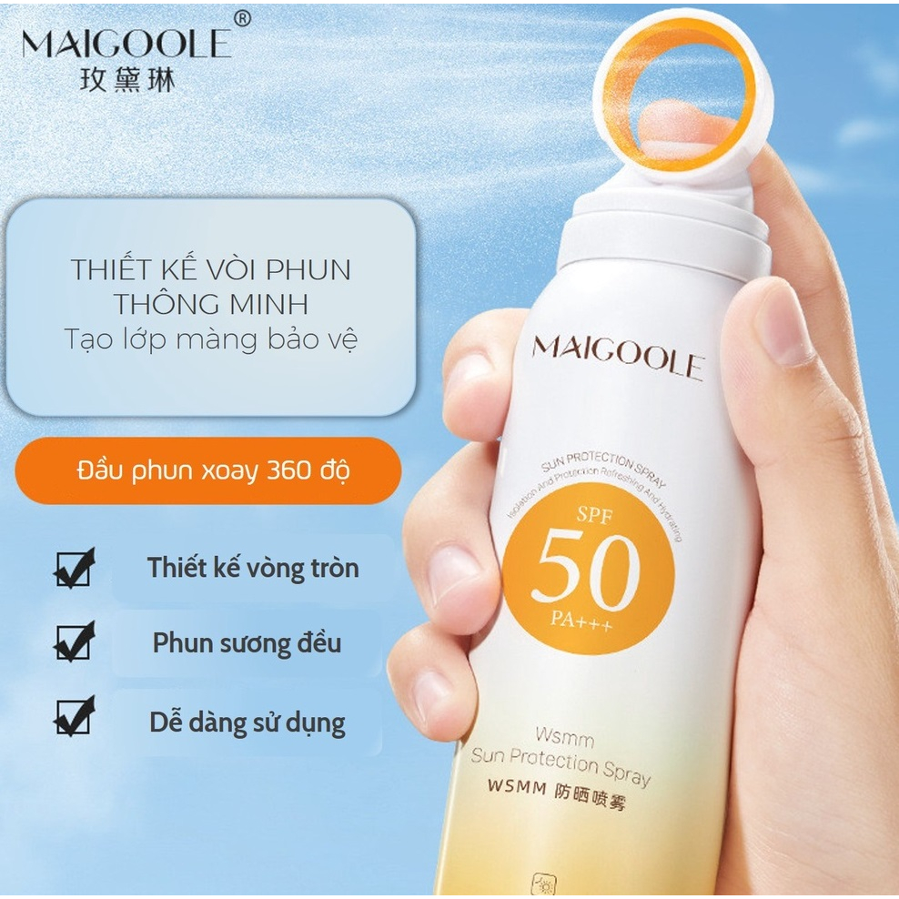 Xịt chống nắng toàn thân, kem chống nắng dạng xịt Maigoole SPF50PA +++ chống nước, chống mồ hôi, dưỡng ẩm và không bết rính, chống nắng hiệu quả