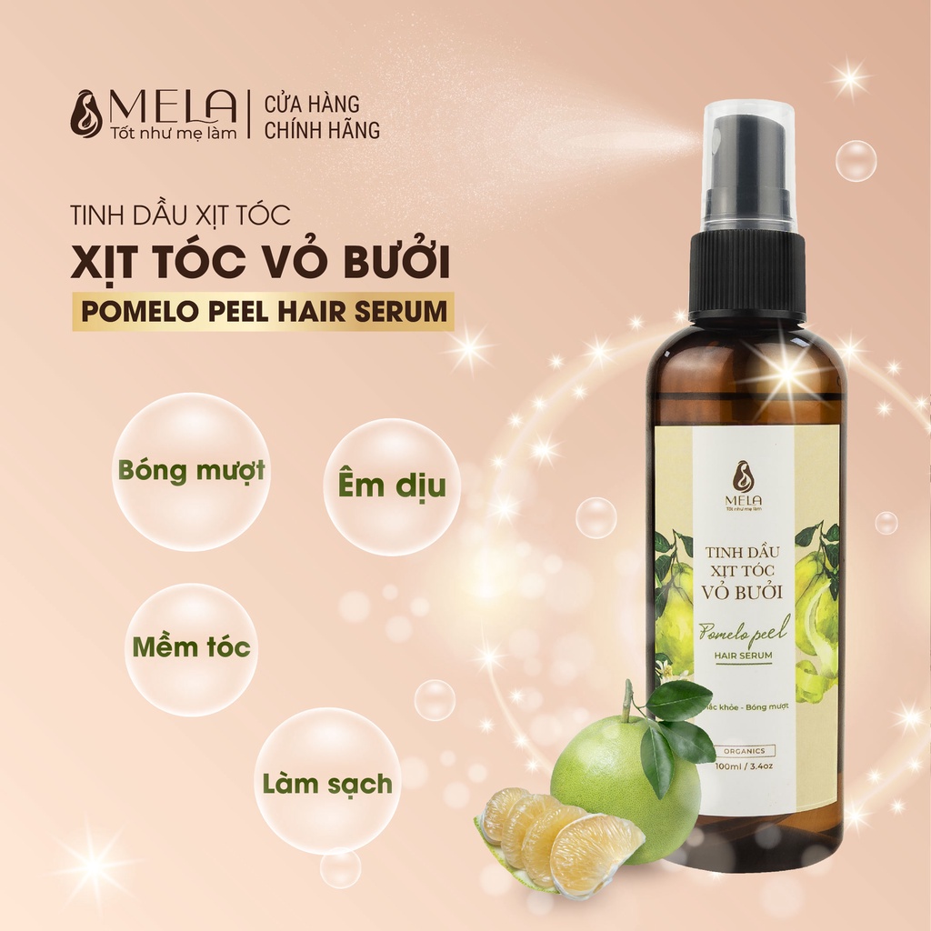 Giới thiệu Xịt dưỡng tóc vỏ bưởi MELA 100ml tác dụng giảm gãy dụng và làm mượt, serum mọc tóc thiên nhiên