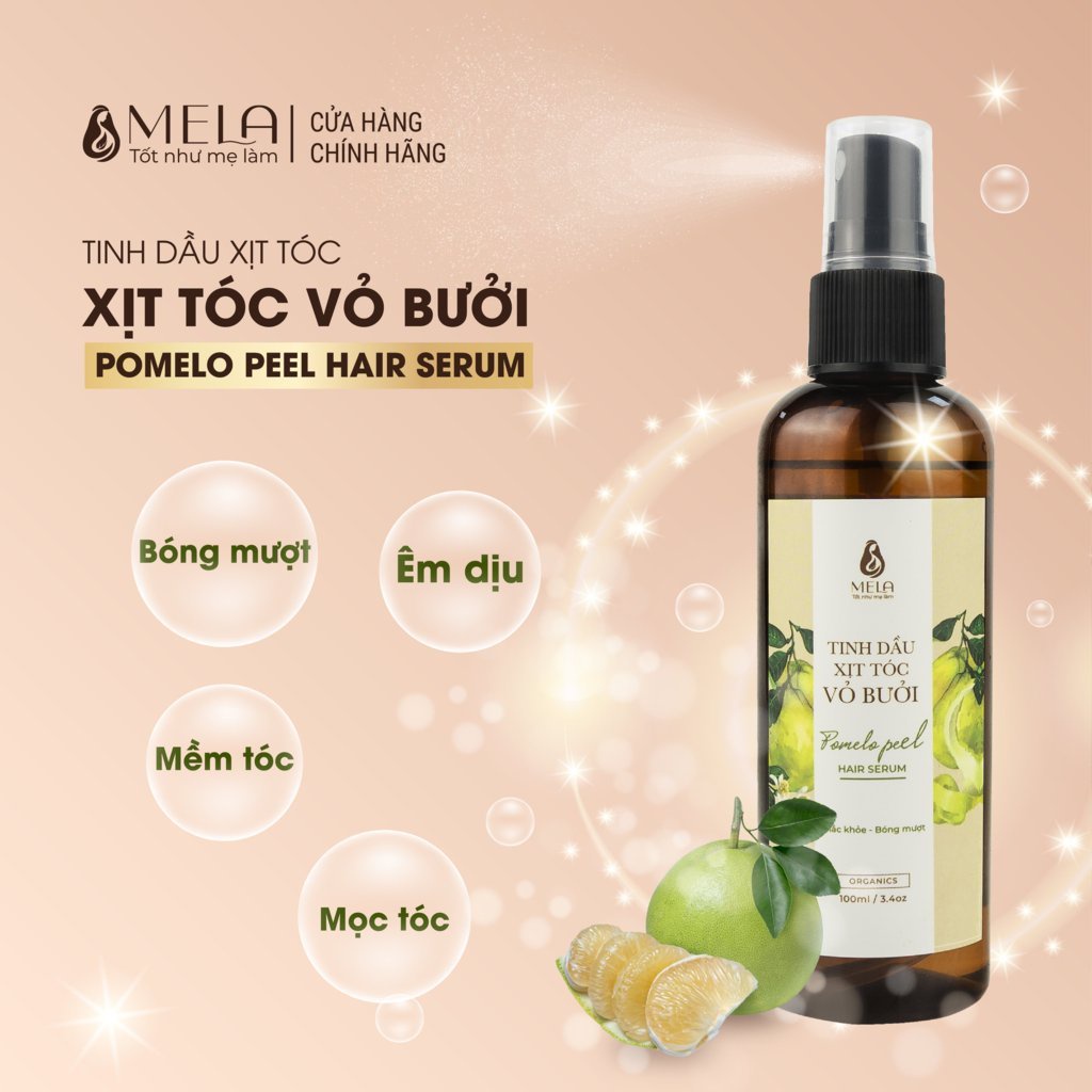 Giới thiệu Xịt Dưỡng Tóc Vỏ Bưởi MELA [chai 100ml] Tác dụng Giảm Gãy Rụng và Làm Mượt