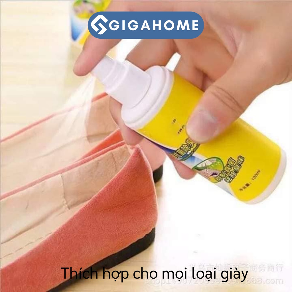 Tên sản phẩm: Xịt Khử Mùi Giày, Chống Hôi Chân GIGAHOME Diệt Khuẩn, Lưu Giữ Hương Thơm 120ml * Thông tin sản phẩm: - Loại bỏ mùi hôi của giày, giúp bạn luôn tự tin khi phải mang giày suốt thời gian dài - Khử mùi đồng thời lưu giữ hương thơm bền lâu, thiết kế dạng xịt thông minh và tiện dụng - Nhỏ gọn, có thể mang đi mọi nơi, bạn có thể sử dụng tại nhà cũng như trên văn phòng, hoàn toàn không tốn quá nhiều diện tích của bạn - Lữ giữ hương thơm dịu nhẹ cho đôi giày của bạn, giúp bạn thêm tự tin - Dung tích : 120 ml - Giúp vệ sinh giày dép của bạn một cách tiện lợi và nhanh chóng, dễ dàng sử dụng trong nhiều trường hợp khác nhau mà không tốn nhiều thời gian của bạn - Thích hợp cho mọi loại giày, bạn nên để một lọ trong giỏ để tiện sử dụng