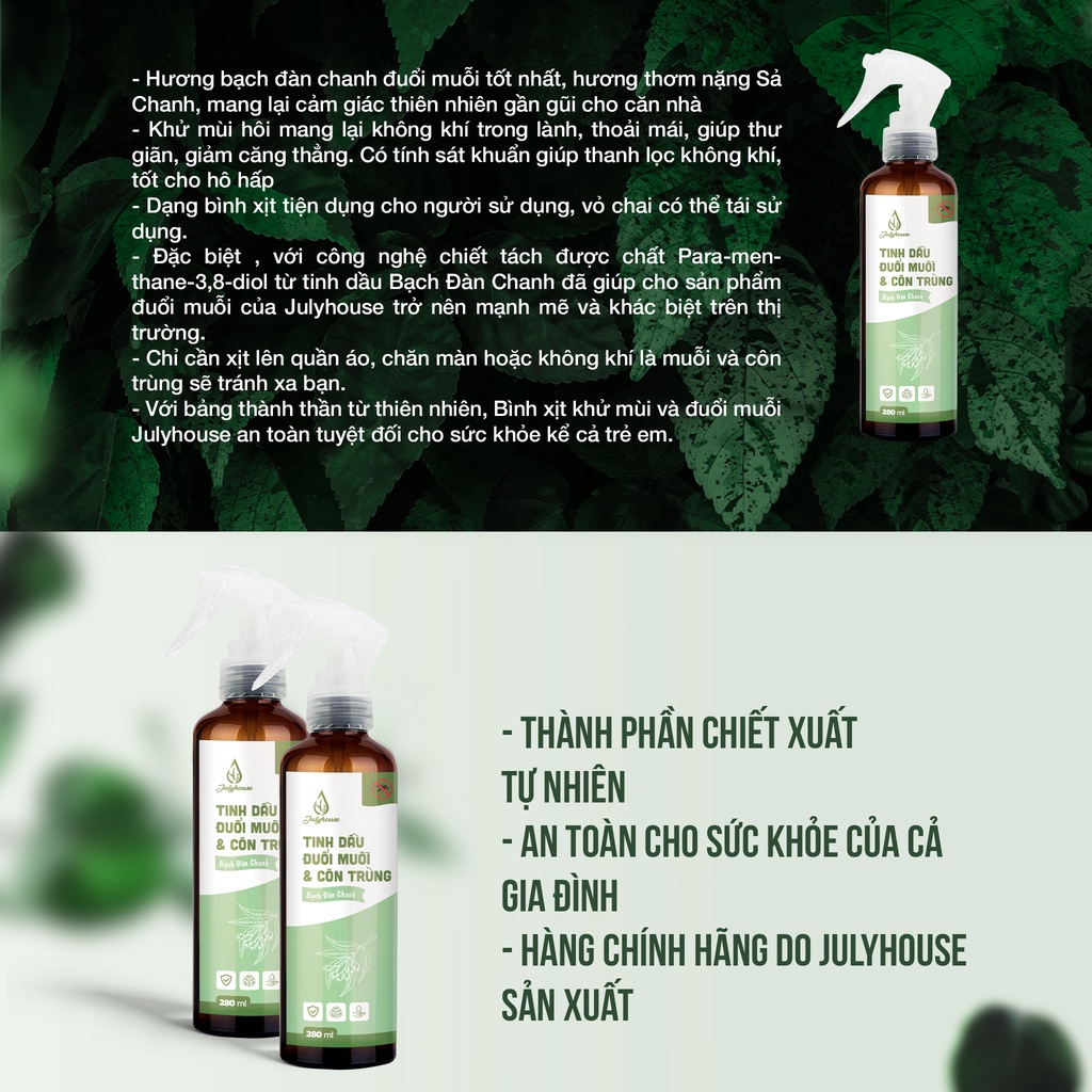 Giới thiệu Xịt phòng đuổi muỗi Julyhouse 280ml chiết xuất từ tinh dầu Bạch đàn chanh
