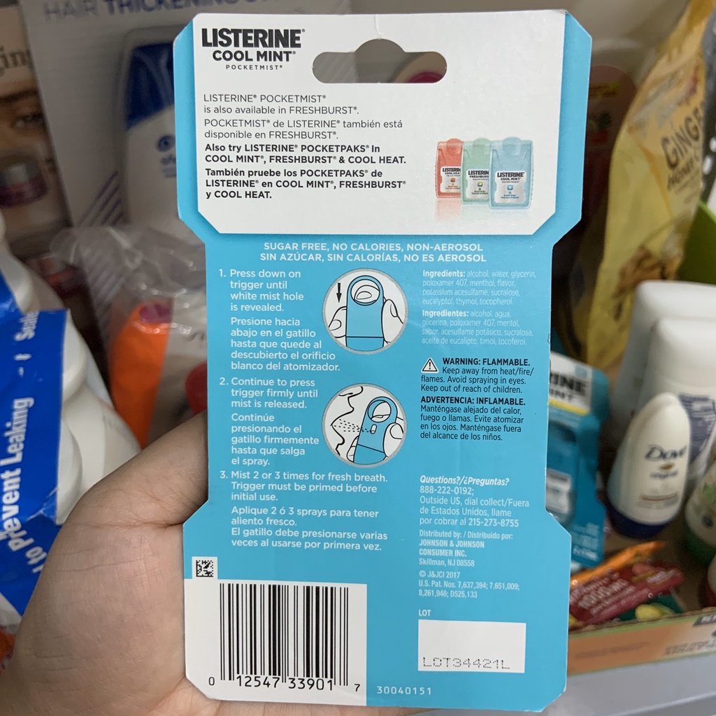 Giới thiệu Xịt thơm miệng Listerine Cool Mint Pocketmist diệt vi khuẩn gây hôi miệng đến 99.9% - EDS Hàng Mỹ
