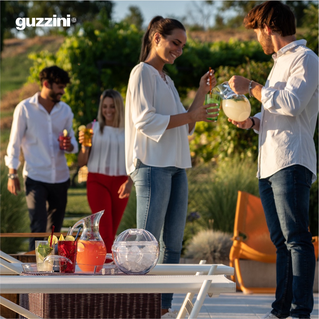 "Xô đá giữ nhiệt Guzzini "STELLA" chắc chắn sẽ mang lại phong cách Futuristi hoàn hảo cho buổi tiệc ngoài trời tiếp theo của bạn. Chiếc xô đá kết cấu 2 lớp, thiết kế hình quả bóng đầy màu sắc và sang trọng này giúp bảo quản đá tối ưu trong thời gian dài hơn. Với sự kết hợp giữa vẻ đẹp và chức năng, chiếc xô đá này có một tay cầm tiện dụng cho phép bạn đóng nó lại khi cất giữ. Xô ướp đá này cũng đi kèm với kẹp gắp đá, giúp lấy đá cho đồ uống dễ dàng hơn. Chất liệu sử dụng là nhựa SAN, có Dung tích 1900 cc, kích thước Ø20 x h20 cm. An toàn với máy rửa chén và bền, sản phẩm chức năng cao này được sản xuất bởi công ty Guzzini của Ý, công ty nổi tiếng với các thiết kế nhà bếp đã lọt vào bộ sưu tập của MoMA - Bộ sưu tập các tác phẩm nghệ thuật hiện đại và đương đại.