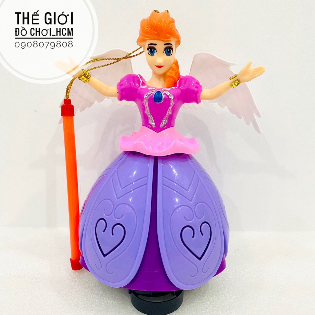 - Sản phẩm là đồ chơi búp bê công chúa Elsa Anna/ Bạch tuyết có đèn nhạc, di chuyển khi gặp vật cản sẽ tự chuyển hướng, XOAY 360 ĐỘ, váy xoè ra lên xuống. - Có dây và cây cho bé cầm như lồng đèn. - Tuỳ chọn mẫu có cánh, mẫu có vương miện, mẫu váy xoè… - Chất liệu: Nhựa - Kích thước khoảng 23x20x10cm. - Khi mua về Ba Mẹ nhớ tháo phần nút tròn phía dưới búp bê để búo bê xoay được. - Tuỳ chọn kèm 3 pin. - Hình/clip do shop tự chụp/quay 100%.