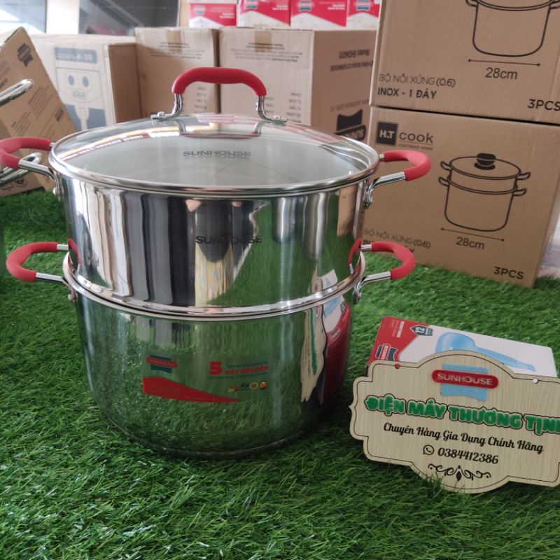 Nhà Cửa & Đời Sống > Đồ dùng nhà bếp và hộp đựng thực phẩm > Chảo, Nồi & Vỉ Nướng > Xửng Hấp Inox,nồi hấp xôi 5 Đáy Sunhouse SHG507-28 Size 28cm,size 24 Đáy Từ Dùng Mọi Bếp - Hàng Chính Hãng