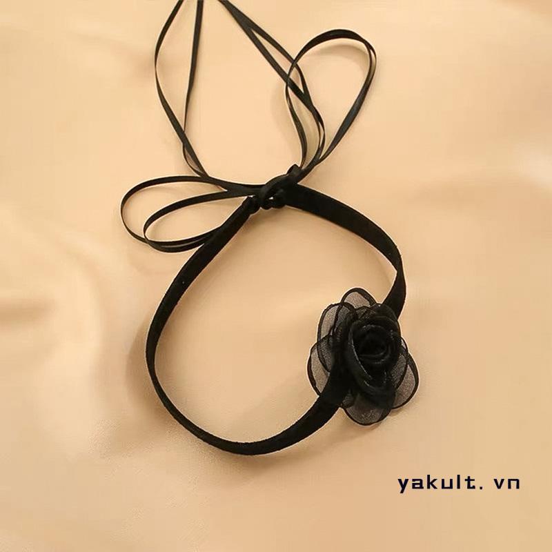 Giới thiệu yakult Vòng Cổ choker Dài Thắt Dây Hoa Trà Đen Thời Trang