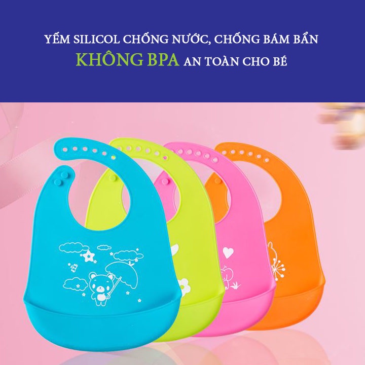 Giới thiệu Yếm ăn dặm có máng Silicol, yếm ăn dặm không BPA, không bám bẩn