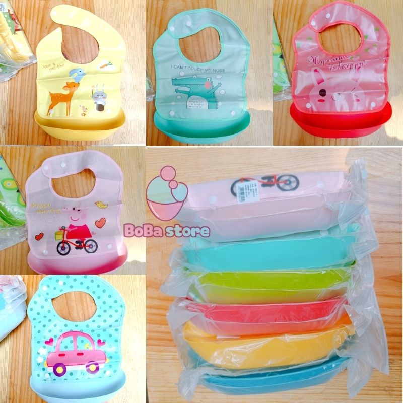Yếm ăn dặm có máng tháo rời cho bé trai - bé gái tại BoBa store --- Yếm nhựa kèm máng và nút có thể tháo rời, hoặc đựng thức ăn khi bé ăn dặm bị đổ. Màu sắc bắt mắt, phù hợp với bé ăn dặm. Dễ vệ sinh và lau chùi khi bị dơ. --- Màu sắc: như phân loại đính kèm (hoa văn/ hoạ tiết hình ảnh có thể thay đổi tuỳ theo đợt hàng) --- #bobastore #yemandamcomang
