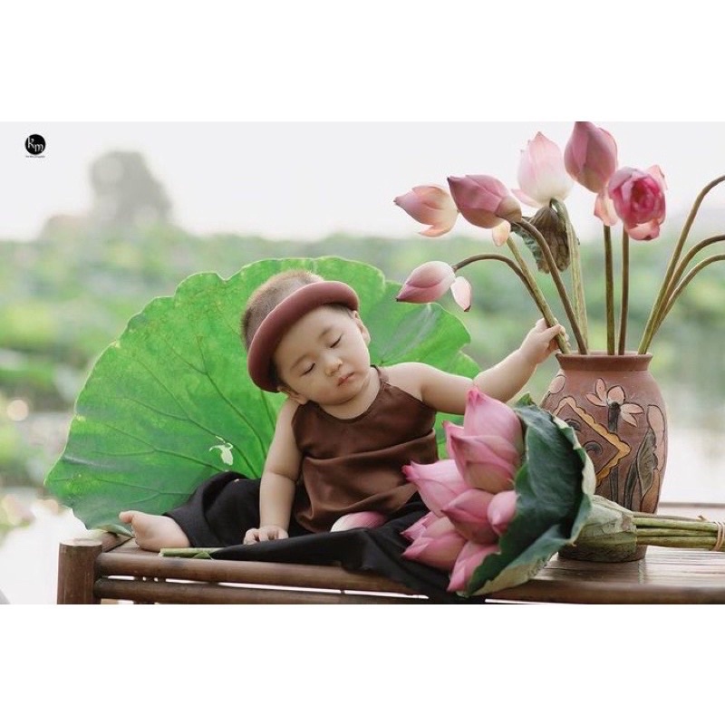 Giới thiệu Yếm cho bé gái - mẫu chụp hoa sen siêu đẹp.(mấn- yếm- chân váy)