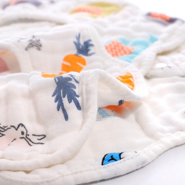 YếmTròn Xoay 360 Độ Chất Liệu Vải Xô 8 Lớp Cúc Ngang Cho Bé Mềm Mịn Thấm Hút Siêu Tốt - Yếm Ăn Dặm Có Cúc Bấm