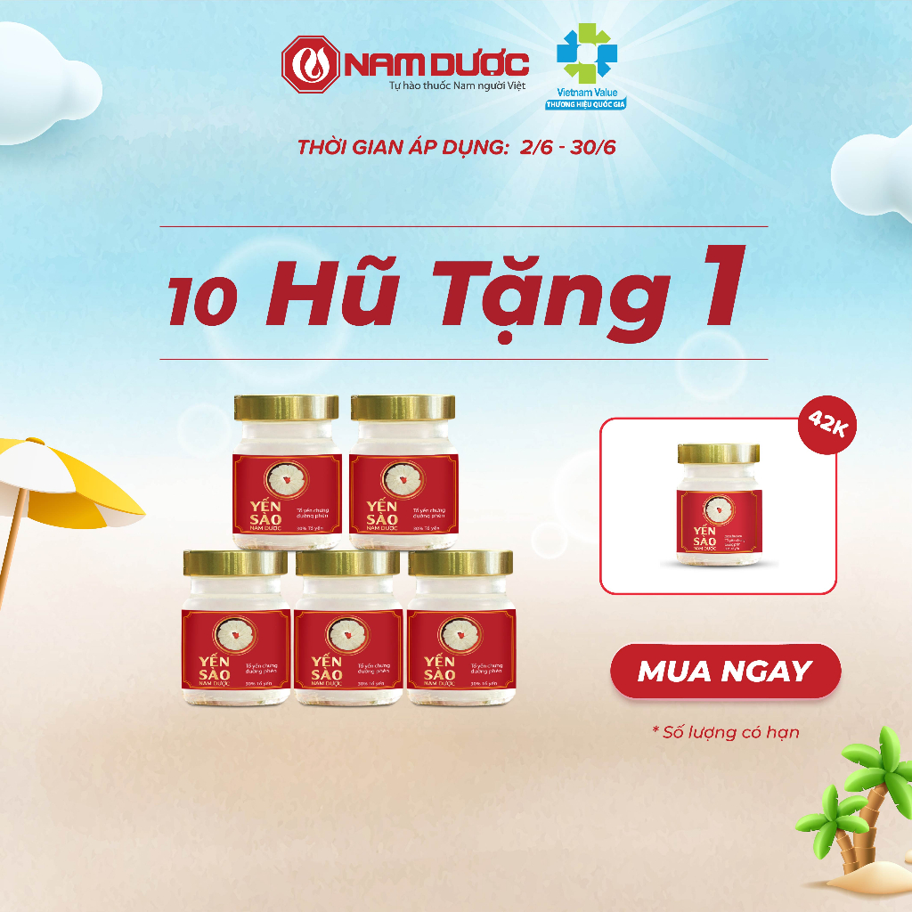 Combo 30 hũ yến sào Nam Dược cao cấp tổ yến chưng đường phèn 70ml bồi bổ sức khỏe, tăng sức đề kháng, giảm mệt mỏi 🔰 CÔNG DỤNG Yến sào Nam Dược tổ yến chưng đường phèn - Yến sào Nam Dược với hàm lượng yến cao lên đến 30% kết hợp cùng các acid amin và dược liệu quý giúp bồi bổ sức khỏe, tăng sức đề kháng, giảm mệt mỏi. - Yến sào Nam Dược từ nguồn yến sào thiên nhiên Khánh Hòa đạt chuẩn, giữ trọn dưỡng chất quý, tươi, sạch. Sản phẩm được sản xuất trên dây chuyền chất lượng quốc tế ISO 22000:2018. - Sử dụng 100% sợi yến nguyên chất Khánh Hòa đạt chuẩn. - Không sử dụng chất bảo quản, chất tạo màu, mùi hương tổng hợp. - Là sản phẩm tổ yến chưng sẵn có hàm lượng tổ yến cao lên đến 30%. - Sản xuất theo công nghệ hiện đại, đảm bảo giữ trọn lượng dưỡng chất quý, tươi, sạch. Giúp bảo quản sản phẩm lên tới 24 tháng từ ngày sản xuất mà không cần sử dụng chất bảo quản. - Phù hợp với nhiều đối tượng sử dụng. - Yến sào Nam Dược - tổ yến chưng đường phèn là sản phẩm của Công ty CP Nam Dược - Công ty dược tiên phong trong nghiên cứu và sản xuất chế phẩm từ dược liệu quý, Nam Dược hy vọng mang đến những sản phẩm thượng hạng cho sức khỏe với nguồn gốc xuất xứ đạt chuẩn, an toàn, hiệu quả