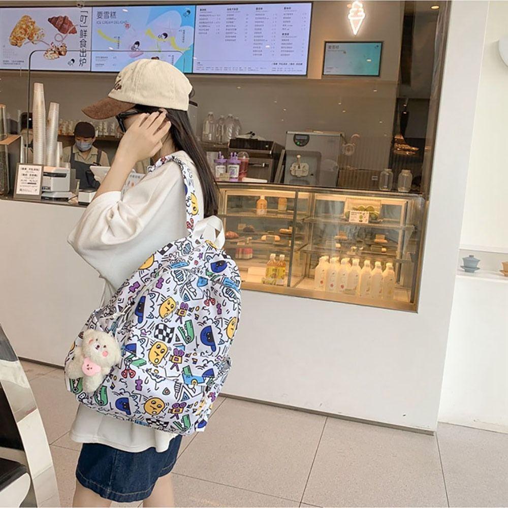 2. Xin vui lòng cho phép đo độ lệch 1-3 cm do đo lường thủ công . Ba lô đi học Ba lô sinh viên Đại học Ba lô Túi đeo vai Túi xách Dung tích lớn Graffiti của phụ nữ Cá tính Đáng yêu Nhỏ
