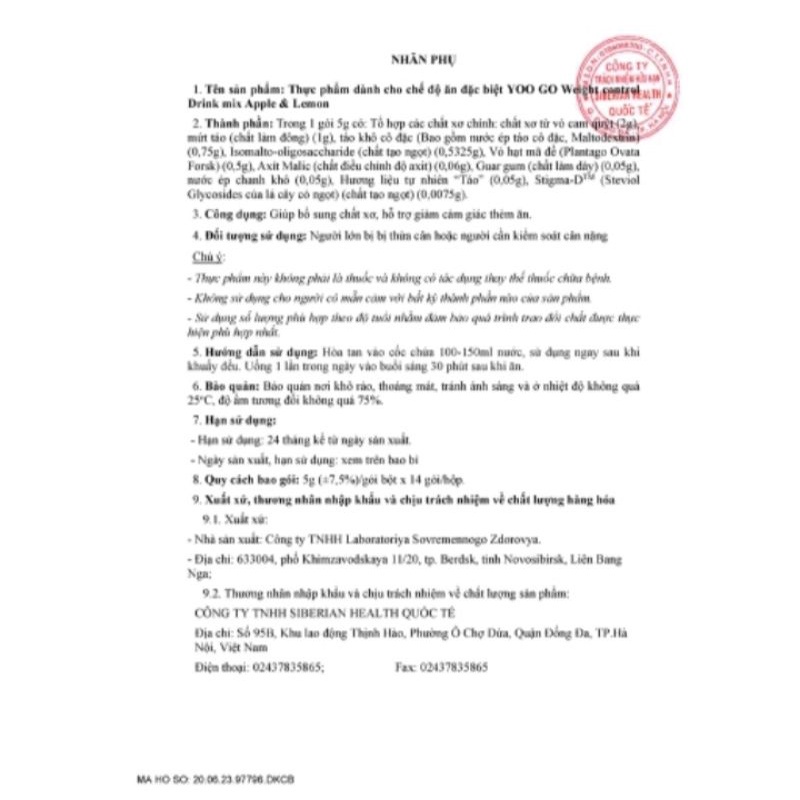 Siberian Việt Nam Thực phẩm dành riêng cho cơ chế ăn rất rất YOO GO WEIGHT CONTROL DRINK MIX APPLE & LEMON