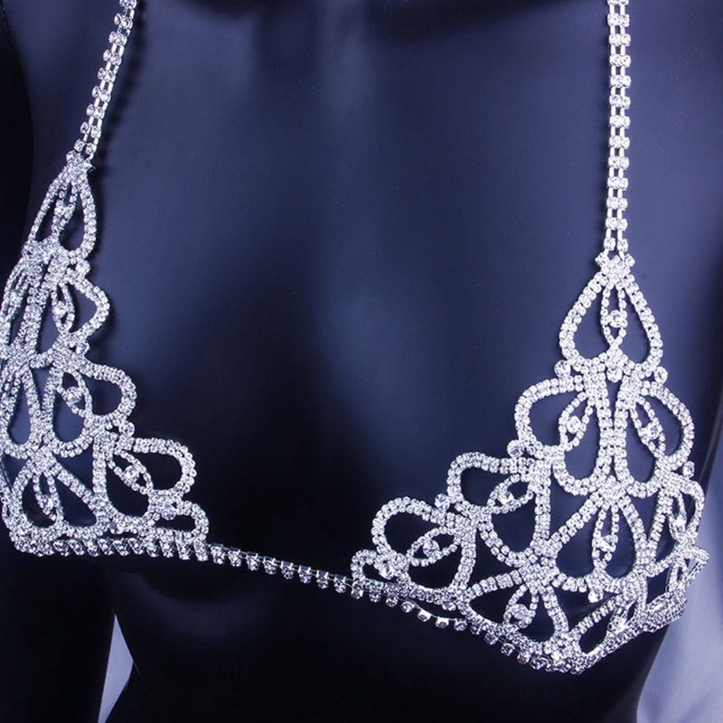 Phụ nữ Sexy Hollow Heart for Rhinestone Bra Panties Set Glitter Faux Crystal Chain Bikini Đồ lót Cơ thể Đồ trang sức Câu lạc bộ Mô tả: