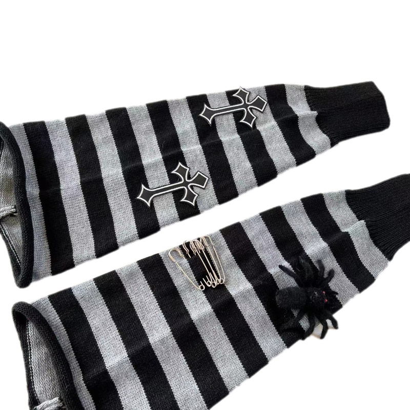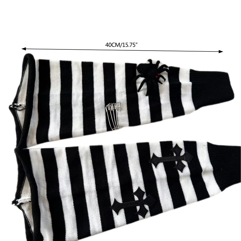 Mùa đông Gothic Knitted Leg Warmers Nhện 3D dễ thương cho Chéo Badage sọc Che chân Các tính năng: thương hiệu mới và chất lượng cao Phong cách punk màu tối, sọc màu tương phản, còng đàn hồi, chỉ cần mặc trực tiếp vào là không bị rơi ra. Phù hợp cho Halloween, tiệc cosplay, dạ hội, tiệc hóa trang, bất kỳ lễ hội nào hoặc cuộc sống hàng ngày, v.v. Viền loe, ghim kim loại, nhện 3D và thêu hình thêu để trang trí đồ xấu chéo, đầy các yếu tố Hallowen. Được làm từ chất liệu sợi acrylic cao cấp, thân thiện với làn da, mềm mại và thoải mái khi chạm vào. Kết hợp chúng với váy, váy, quần short, giày bệt, giày cao gót yêu thích của bạn, v.v. Thích hợp cho thanh thiếu niên, sinh viên trung học, sinh viên đại học và phụ nữ.
