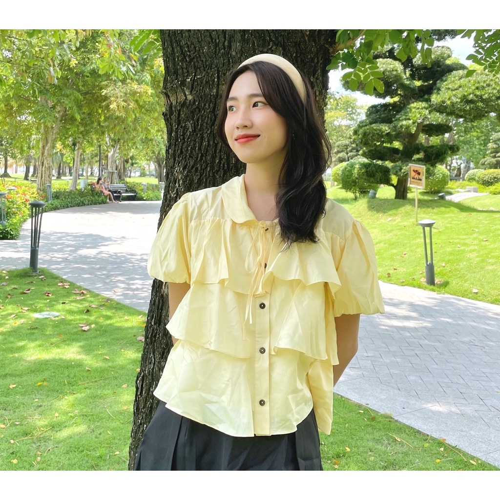 Giới thiệu YU CHERRY | Áo nữ chất vải tơ mịn, nhiều tầng có dây nơ cổ, Duchess Mini Blouse YA424