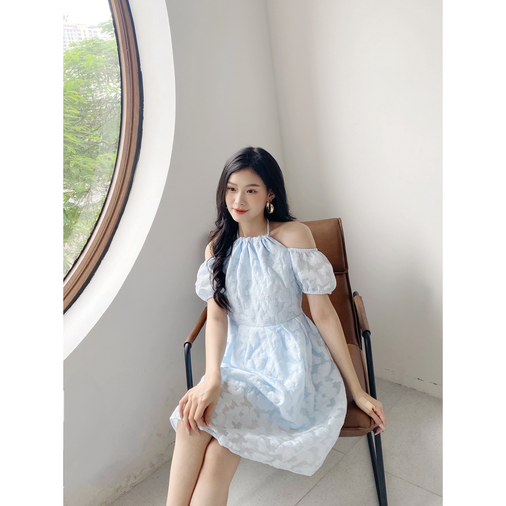 Giới thiệu YU CHERRY | Đầm cổ yếm nữ thêu họa tiết đám mây, tay phồng, Momo Yem Dress YD159