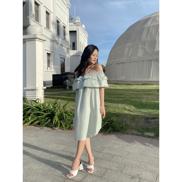Giới thiệu YU CHERRY | Đầm trễ vai hai tầng quanh ngực, Layered Ruffle Dress YD153
