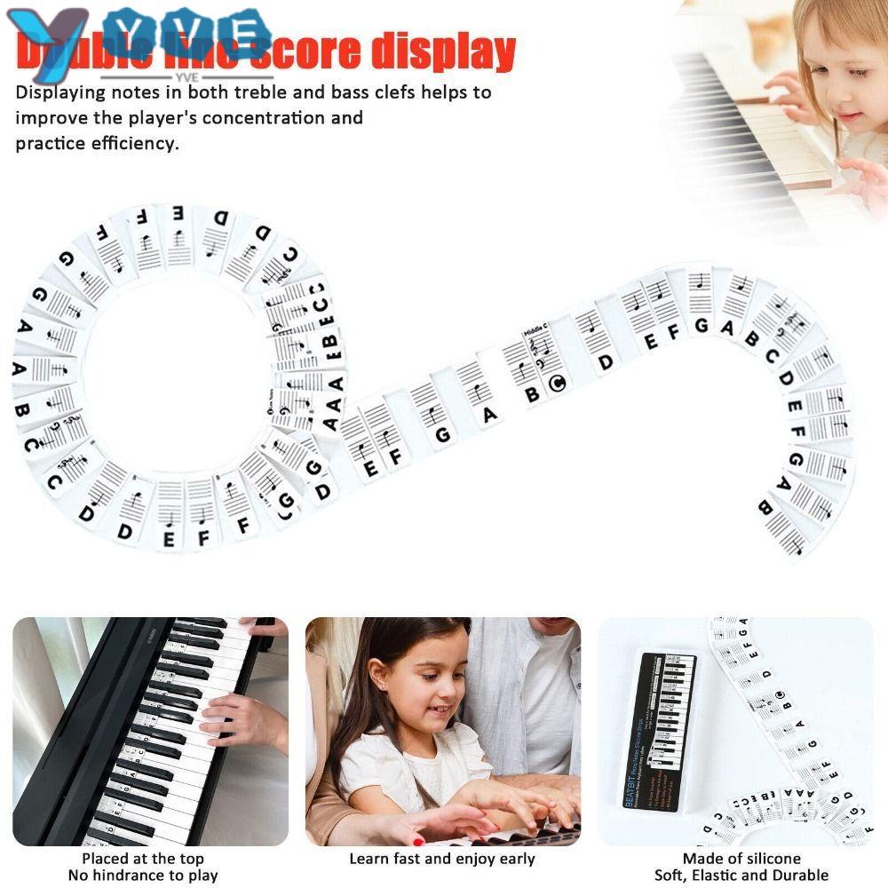 In rõ ràng - Các chữ cái và ghi chú ngũ trương trên nhãn rất rõ ràng , cho phép người mới bắt đầu học các nốt piano chính xác hơn .