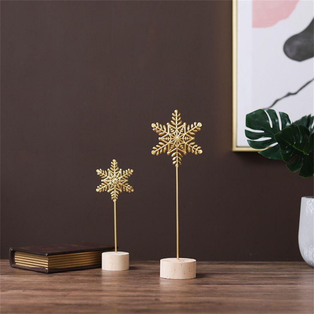 3. 1cm=0.39in Snowflake Ornament Wrought Iron Craft Art Figurine Standing Sculpture Nordic Golden Handicraft Home Decoration Table Accessories Gift