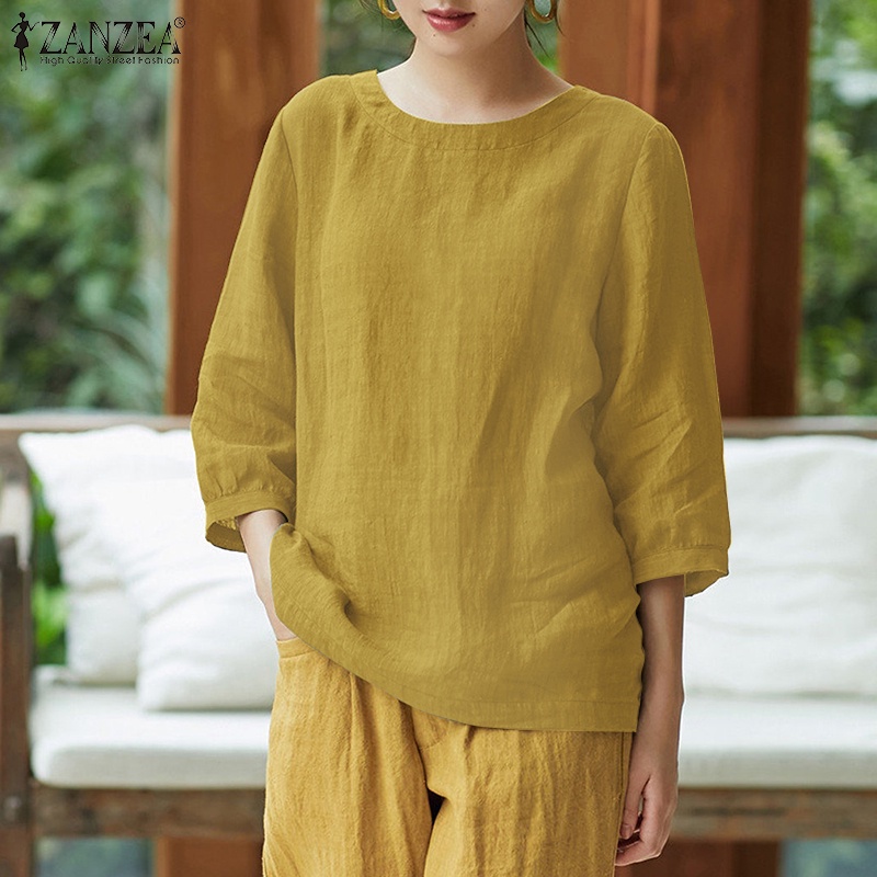 Giới thiệu ZANZEA Áo Kiểu Cổ Tròn Tay 3 / 4 Thắt Nơ Phong Cách Hàn Quốc Dành Cho Nữ