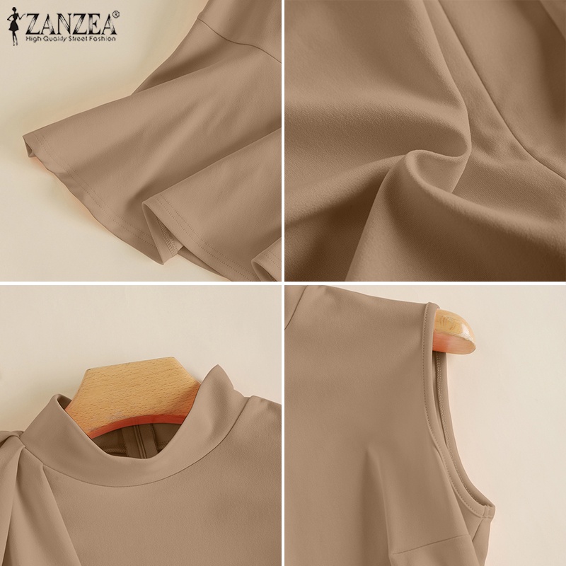 Giới thiệu Zanzea Áo Kiểu Không Tay Cổ Đứng Phối Bèo Và Khóa Kéo Sau Thời Trang Cho Nữ