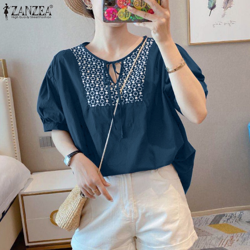 Giới thiệu Zanzea Áo Kiểu Nữ Tay Ngắn Cổ Tròn Dáng Rộng Cột Dây Thời Trang