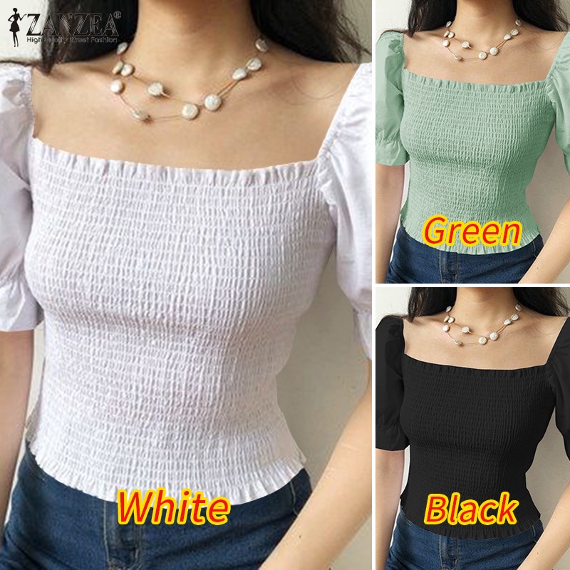 Giới thiệu ZANZEA Áo Kiểu Tay Phồng Cổ Vuông Phong Cách Hàn Quốc Đơn Giản Thời Trang Cho Nữ