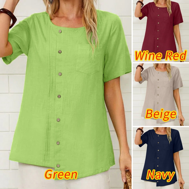 Giới thiệu Zanzea Áo Sơ Mi Cổ Tròn Tay Ngắn Thời Trang Dành Cho Nữ