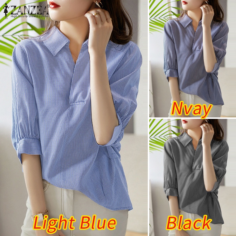 Giới thiệu ZANZEA Áo Sơ Mi Nữ Ca Rô Dài Tay Cổ Bẻ Thời Trang