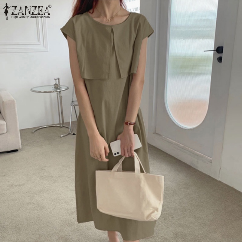 Giới thiệu ZANZEA Đầm Không Tay Cổ Tròn Thời Trang Nữ Hàn Quốc