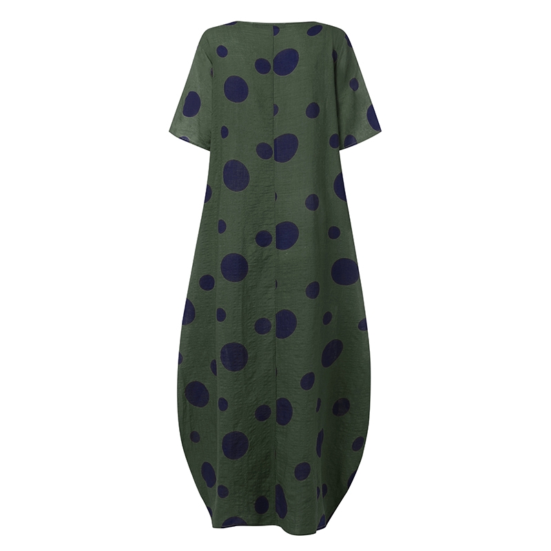 Giới thiệu ZANZEA Đầm Maxi Họa Tiết Chấm Bi Phong Cách Retro