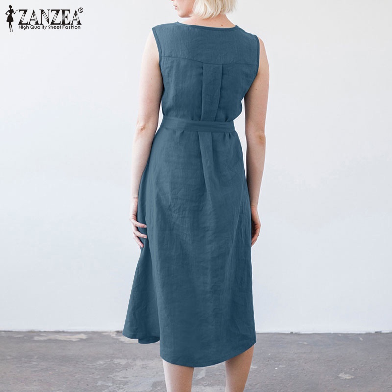 Giới thiệu Zanzea Đầm Midi Sát Nách Cổ Tròn Có Túi Bên Hông Và Thắt Lưng Tháo Rời Được Đa Năng