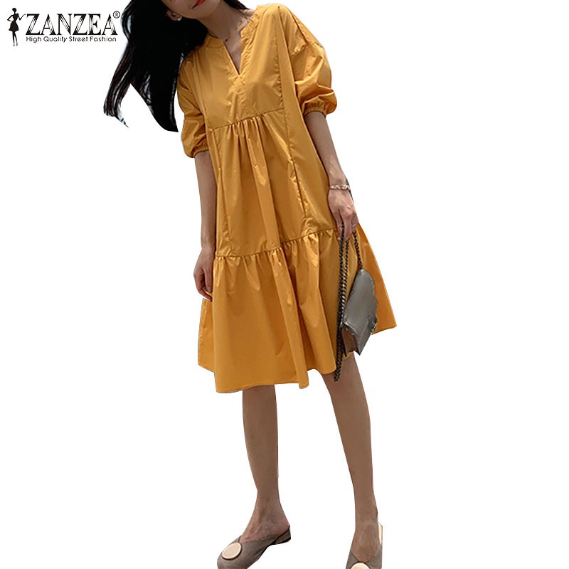 Giới thiệu Zanzea Đầm Midi Tay Phồng Cổ V Thời Trang Nữ Tính