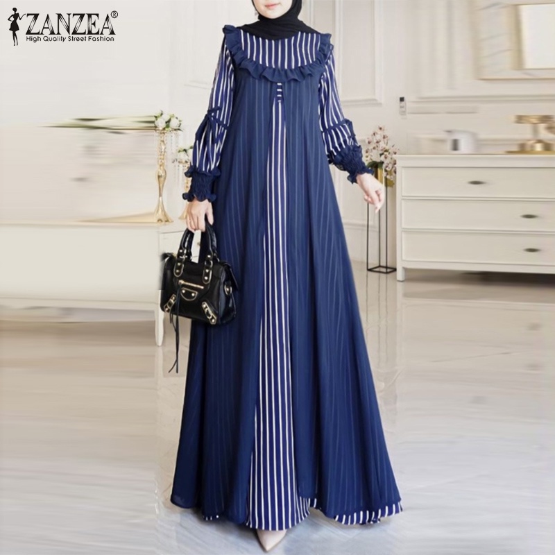 Giới thiệu Zanzea Đầm Nữ Cổ Tròn Tay Dài Họa Tiết Caro Phong Cách Retro