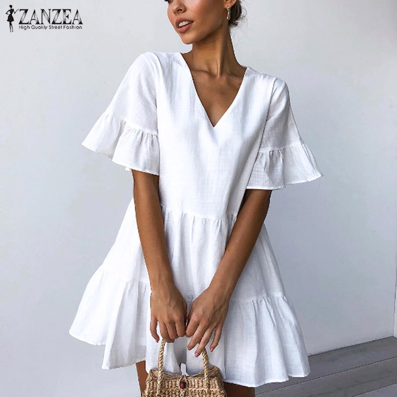 Giới thiệu ZANZEA Đầm Nữ Tay Ngắn Cổ V Thời Trang Quyến Rũ