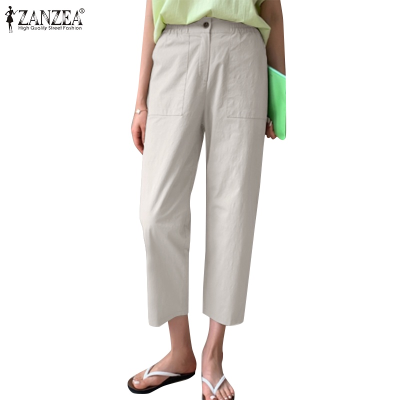 Giới thiệu Zanzea Quần Dài Lưng Thun Màu Trơn Có Khóa Kéo Trước Thời Trang Hàn Quốc Cho Nữ