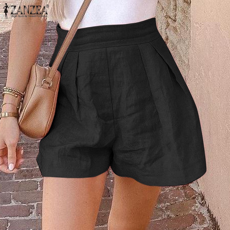 Giới thiệu Zanzea Quần Short Cotton Lưng Cao Ống Rộng Màu Trơn Phối Túi Thời Trang Cho Nữ