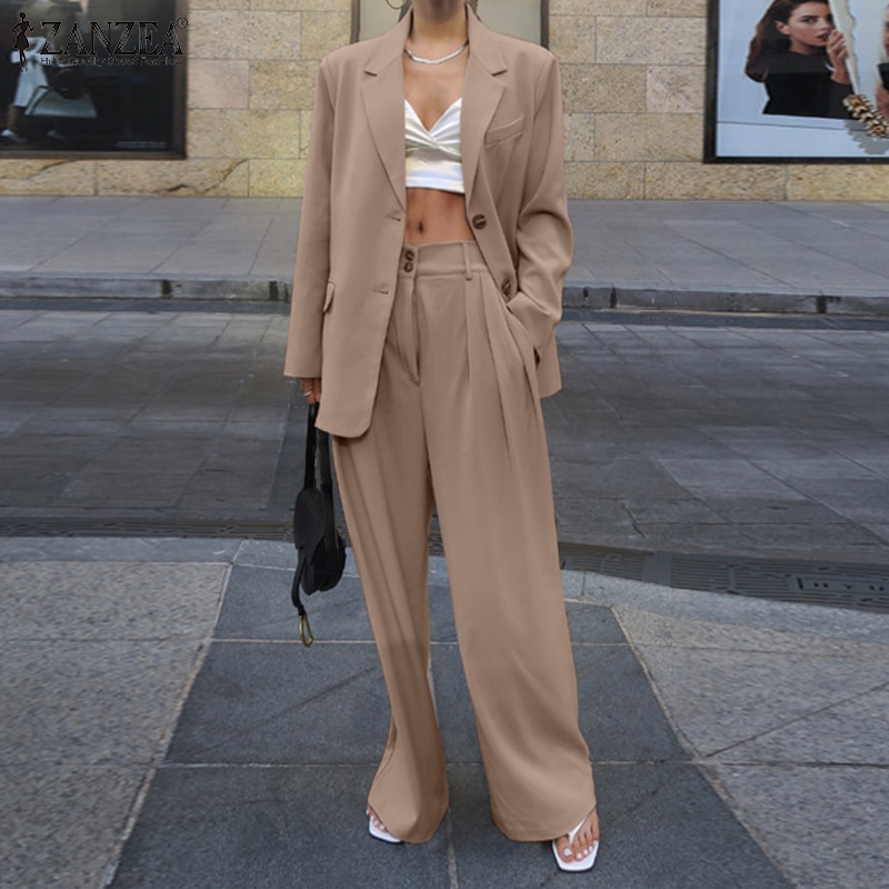 Giới thiệu ZANZEA Set Áo Khoác Blazer + Quần Dài Lưng Thun Thời Trang Nữ