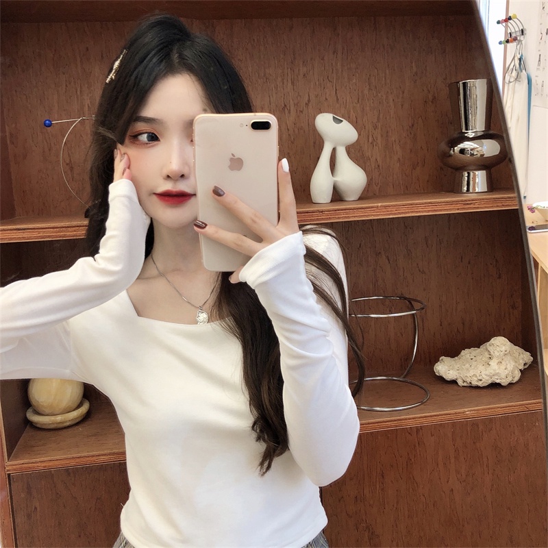 ZHELIHANGFEI Áo Thun Tay Dài Cổ Vuông Form Ôm Kiểu Dáng Quyến RũGiá RUG